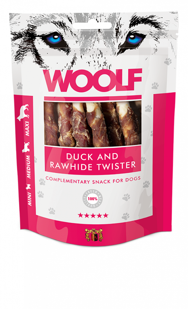 These Duck and Rawhide Twisters are made of 100% protein sources to provide the highest quality and the best nutritional intake. The Woolf snack, once cooked, is packed without any chemical additives, preservatives or colourings.
