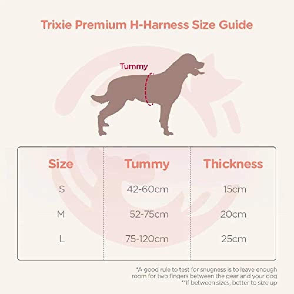 Trixie Premium H-harness indigo Small to MediumMeasurements:Stomach circumference: 42-60 cmthickness; 15 mm
